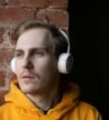 A laundromat is seen under fading evening light, with bright fluorescent lights illuminating the interior. The windows display lettering advertising services like wash, dry, and fold. Outside, newspaper and vending machines are positioned beside the entrance. Trees and a deepening purple sky form the backdrop.